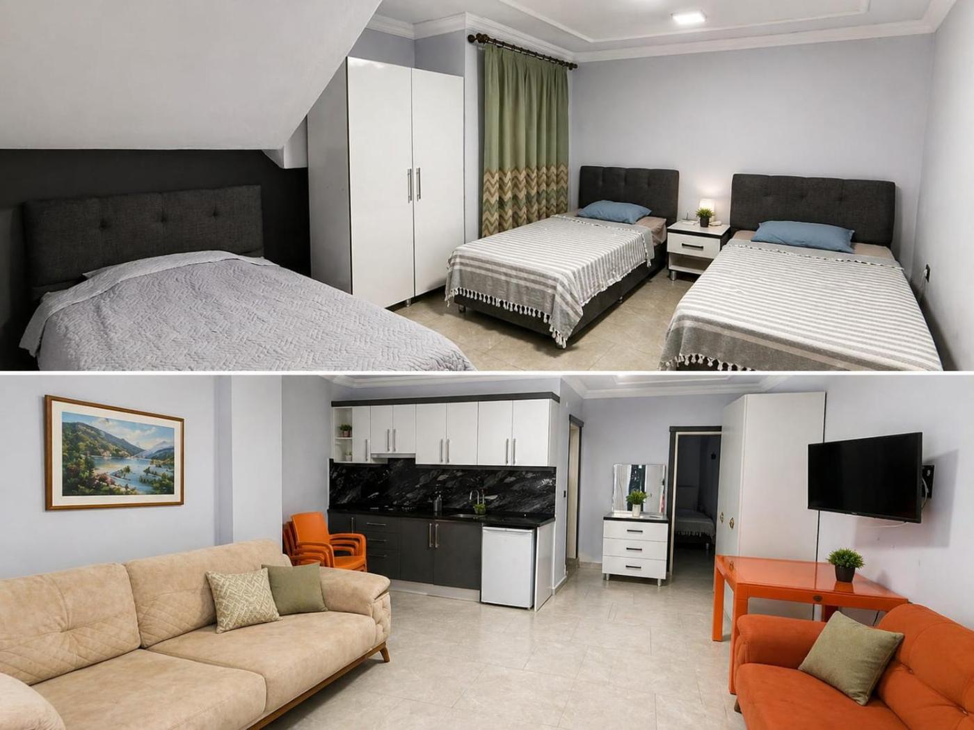 İki Odalı Daire. This air-conditioned apartment includes 1 living room, 1 separate bedroom and 1 bathroom with a shower. In the kitchen, guests will find a stovetop, kitchenware and an electric kettle. Boasting a balcony with garden views, this apartment also offers a minibar and a flat-screen TV. The unit has 3 beds. ;