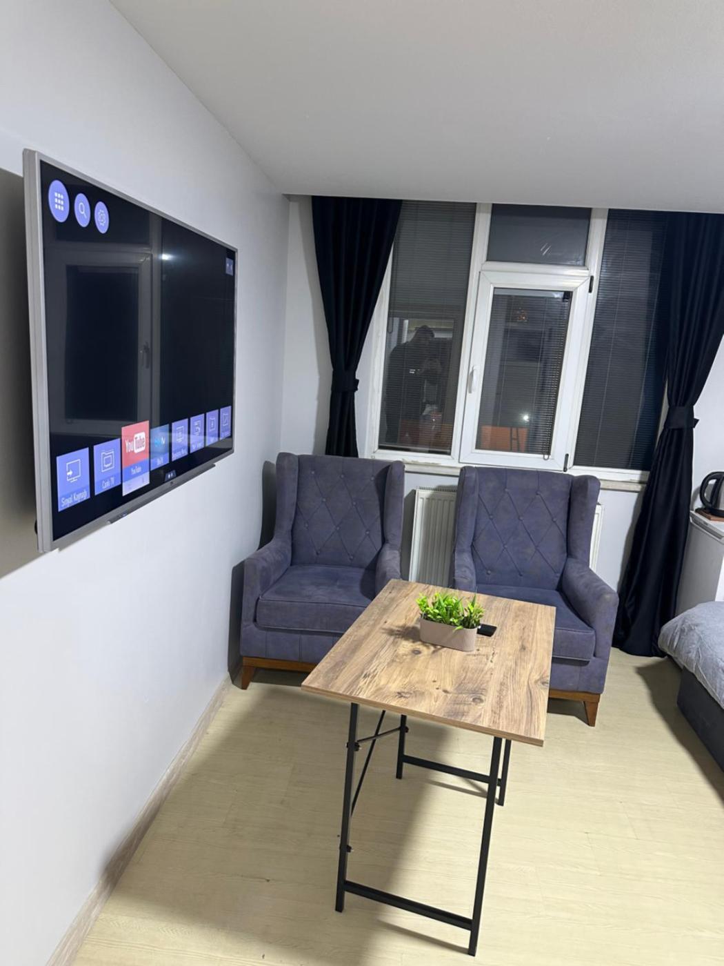 Çift Kişilik Oda. Providing free toiletries and bathrobes, this double room includes a private bathroom with a shower and a hairdryer. Guests can make meals in the fully equipped kitchen that features a stovetop, a refrigerator and kitchenware. The spacious air-conditioned double room provides a flat-screen TV with streaming services, a washing machine, soundproof walls, a tea and coffee maker as well as city views. The unit offers 3 beds.